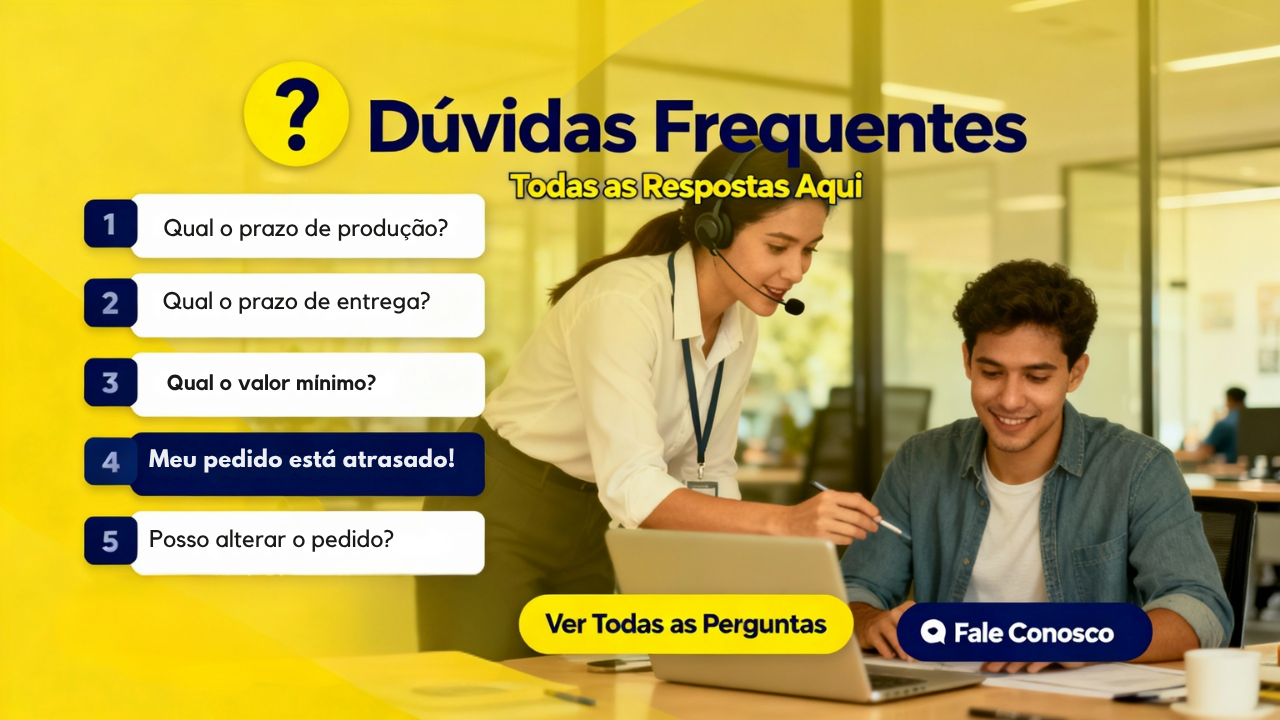1. Nosso prazo de produção leva de 1 a 2 dias úteis.